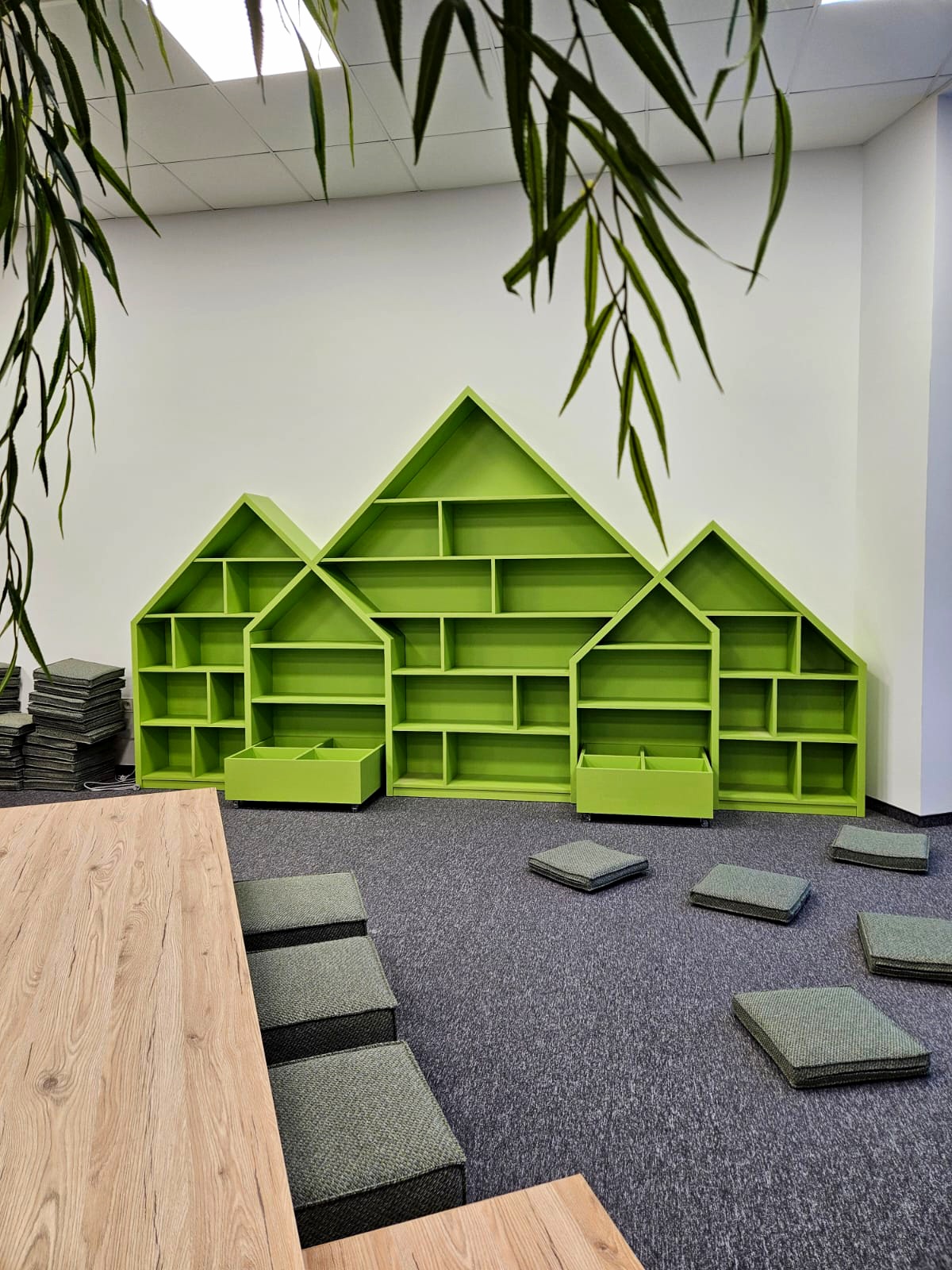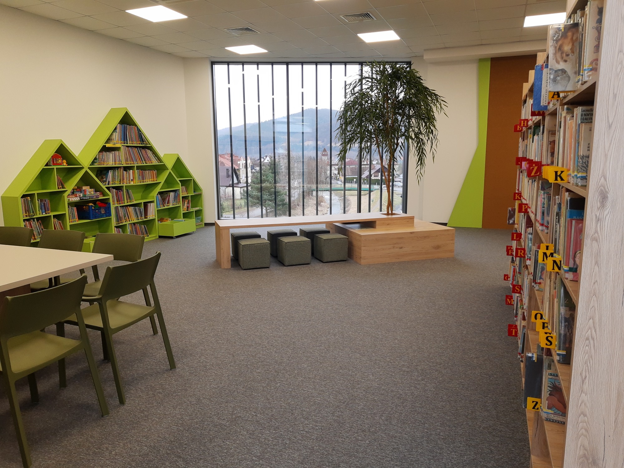 Realizacja projektu tej biblioteki była dla nas ciekawą odskocznią od wnętrz prywatnych i hotelowych, które realizujemy na co dzień. Energetyczne kolory, bardzo ciekawy panel nad ladą bibliotekarską i sam koncept sprawiły, że praca nad tym projektem była dla nas czystą przyjemnością!