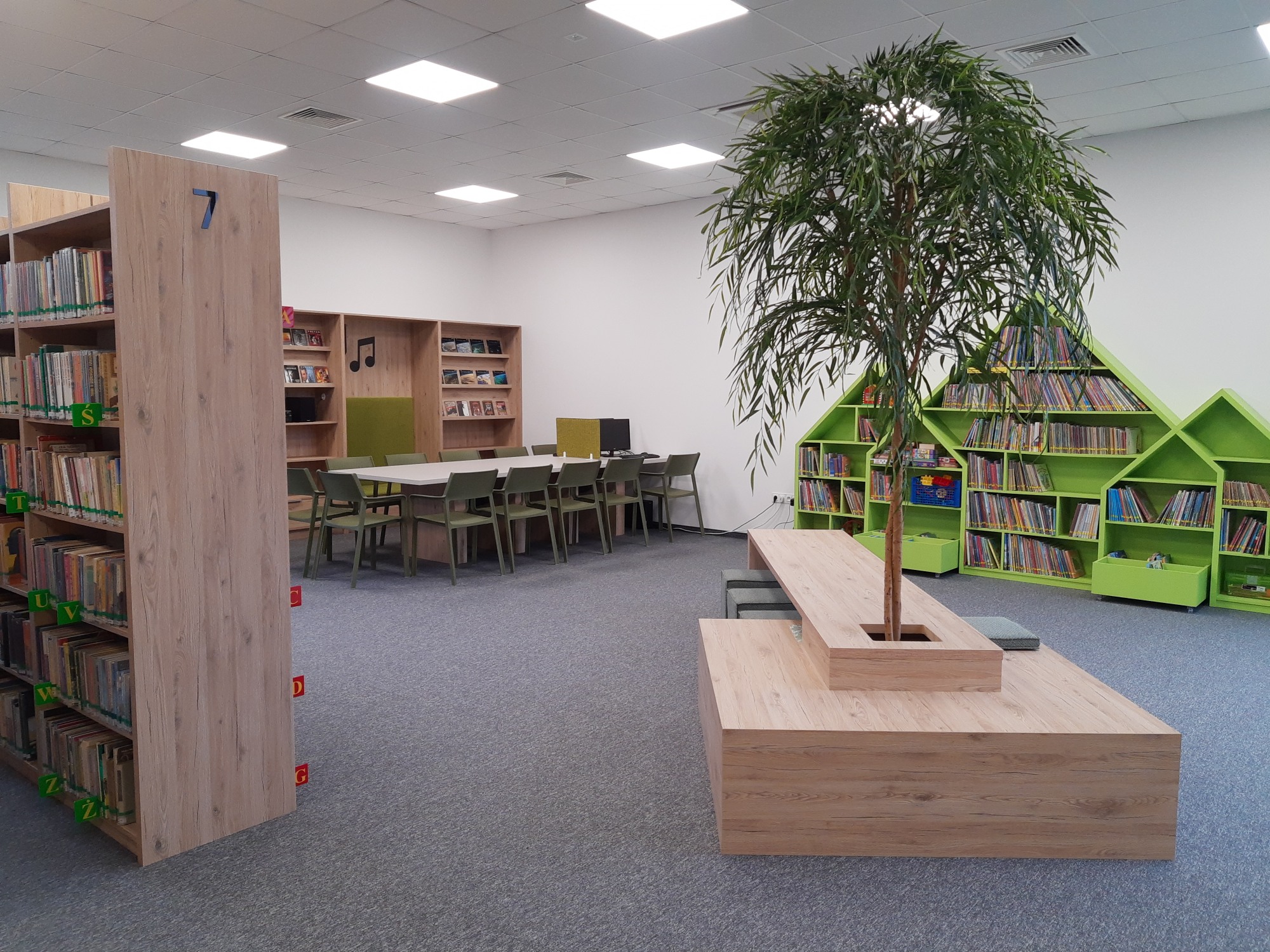 Zakres: część reprezentacyjna, regały, siedziska ze stolikami, część multimedialna, część biurowa, część kuchenna