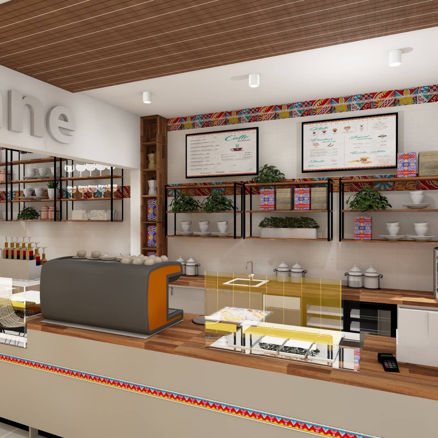 Realizacja projektu tej Katane w Krakowie była nas niesamowitą zabawą. Różnorodne faktury, połączenia kolorystyczne i fantastyczny, żywy charakter projektu sprawiły, że było nam bardzo miło obejrzeć realizację tego niecodziennego projektu o iście sycylijskim sercu. Nie wspominając o świetnych lodach, kawie i fenomenalnych croissantach, na które serdecznie zapraszamy. :)